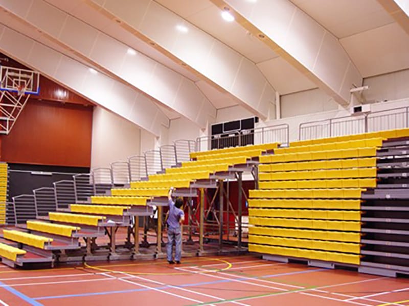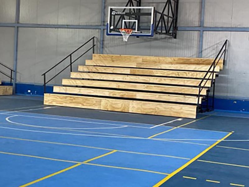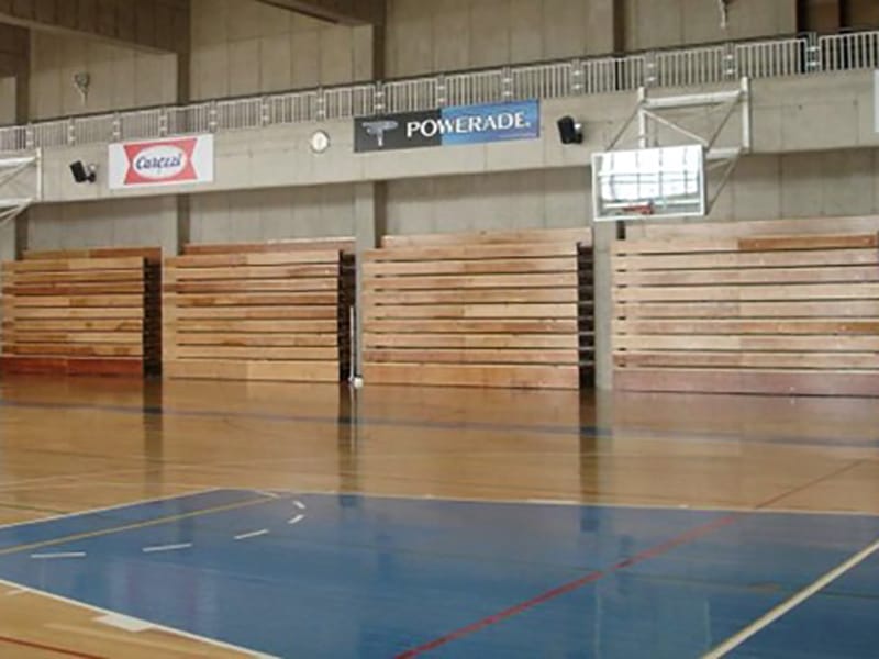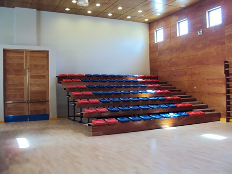 - Equipamiento: Canastas de Baloncesto ajustable en altura, arcos de movibles con sistema de anclaje al piso, sistema portátil de pilares para redes, espalderas de madera y más.