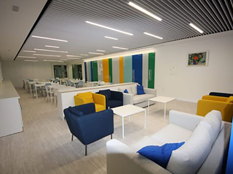 Un lugar de trabajo y planificación, en el cual los docentes interactúan con sus pares, pero también es un espacio de distensión, descanso y convivencia, para lo cual debe contar con excelente conectividad, computadores, mobiliario ergonométrico, espacio de cafetería, sofás, luminosidad, calefacción y servicio higiénico a mano.