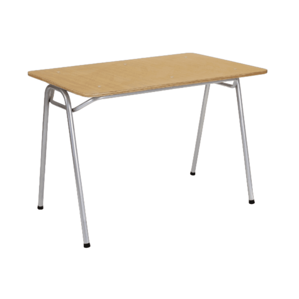 La cubierta del pupitre está realizada en terciado enchapado en formalita, un material elegido cuidadosamente por su resistencia superior a los rayados. Esta característica es esencial para mantener el pupitre en óptimas condiciones a lo largo del tiempo, incluso en un ambiente tan dinámico como el aula de clases.
